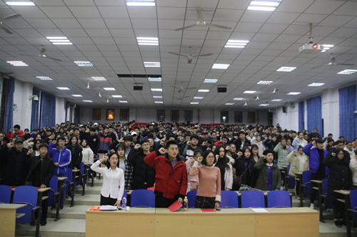 活動(dòng)以模擬憲法宣誓開場(chǎng)。法律系分團(tuán)委書記、兼職團(tuán)委副書記羅大欽領(lǐng)誓。
