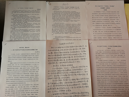 這次在全黨開展的“不忘初心、牢記使命”主題教育,堅持把學習教育、調查研究、檢視問題、整改落實貫穿全過程,其中學習教育是根本,放在首位。自主題教育開展以來,我黨支部嚴格對標上級組織要求開展學習教育,全面系統學、深入思考學、聯系實際學,營造出濃厚的學習氛圍,推動主題教育開好頭、起好步。10月16日下午公共教室五,我支部全體黨員同志在藝術學院黨總支書記林碧蕓同志的帶領下,認真學習研讀《習近平關于“不忘初心,牢記使命”論述摘編》,課堂上同志們專注認真,由于時間限制黨員同志們將課上未完成的論著部分在課下進行了自主學習,并結合個人思想實際和工作實際書寫心得體會交予黨支部。