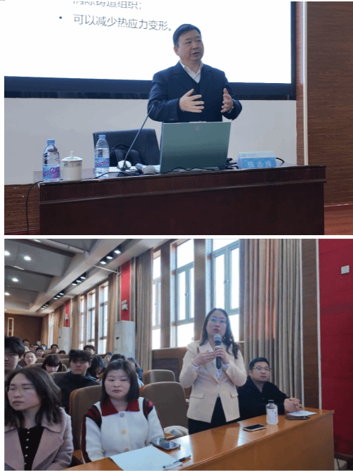 講座現(xiàn)場氣氛熱烈,師生們積極提問,圍繞金屬3D打印技術(shù)的材料設(shè)計、工藝優(yōu)化、科研和教學如何平衡等問題與曲教授展開了深入交流。曲教授耐心解答了師生們的疑問,并結(jié)合實際案例進行了深度解析,現(xiàn)場思維碰撞不斷,學術(shù)氛圍濃厚。