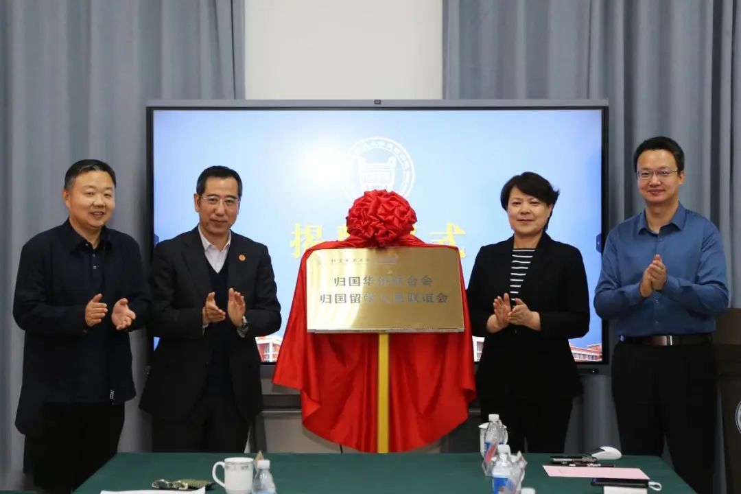中國(guó)僑聯(lián)副主席、市僑聯(lián)黨組書記、主席李占勇,寶坻區(qū)委常委、統(tǒng)戰(zhàn)部部長(zhǎng)劉蘭鳳與學(xué)院院長(zhǎng)丁煦生、黨委書記葉振楠共同為學(xué)院歸國(guó)華僑聯(lián)合會(huì)揭牌。
