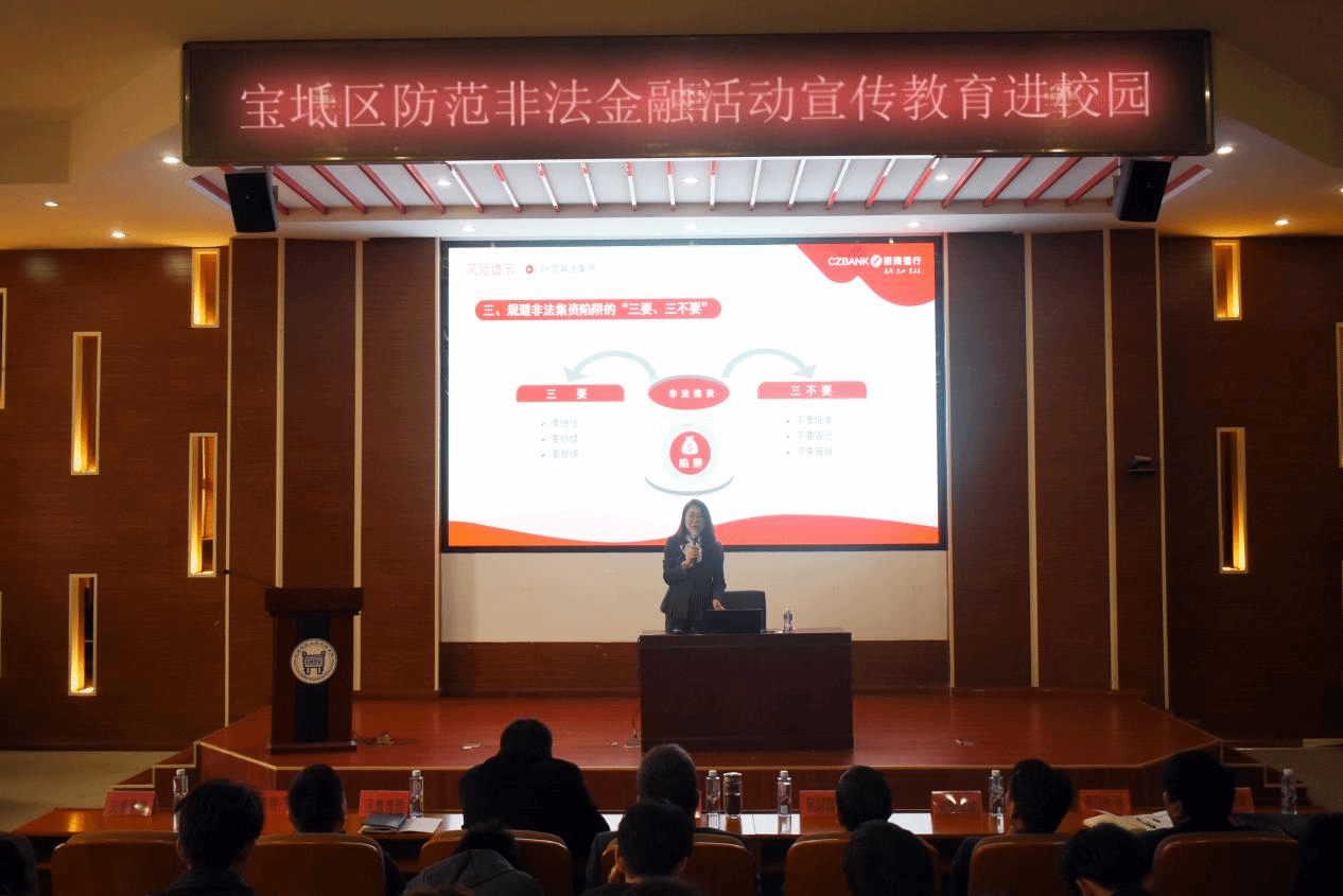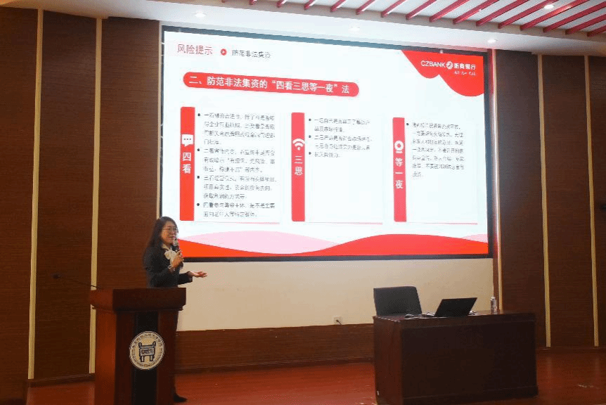 浙商銀行天津分行合規(guī)部高級(jí)經(jīng)理張琳以“金融為民譜新篇·守護(hù)權(quán)益防風(fēng)險(xiǎn)”為主題,通過對(duì)“非法集資”、“套路貸”、“電信網(wǎng)絡(luò)詐騙”、“反電信網(wǎng)絡(luò)詐騙法”的深入解析,總結(jié)了“八個(gè)凡是”、“三個(gè)不要”、“六個(gè)一律”的安全提示,著力提升廣大師生防騙“免疫力”。