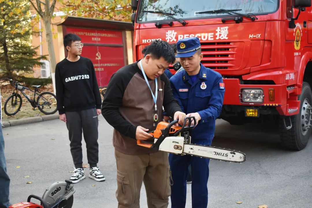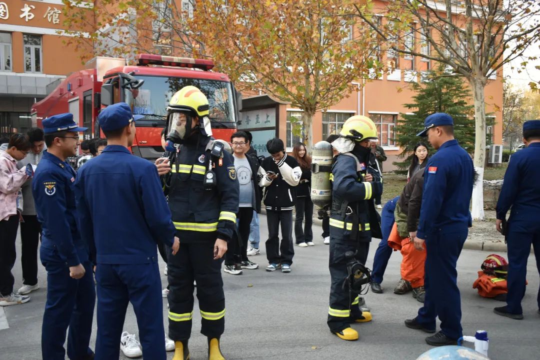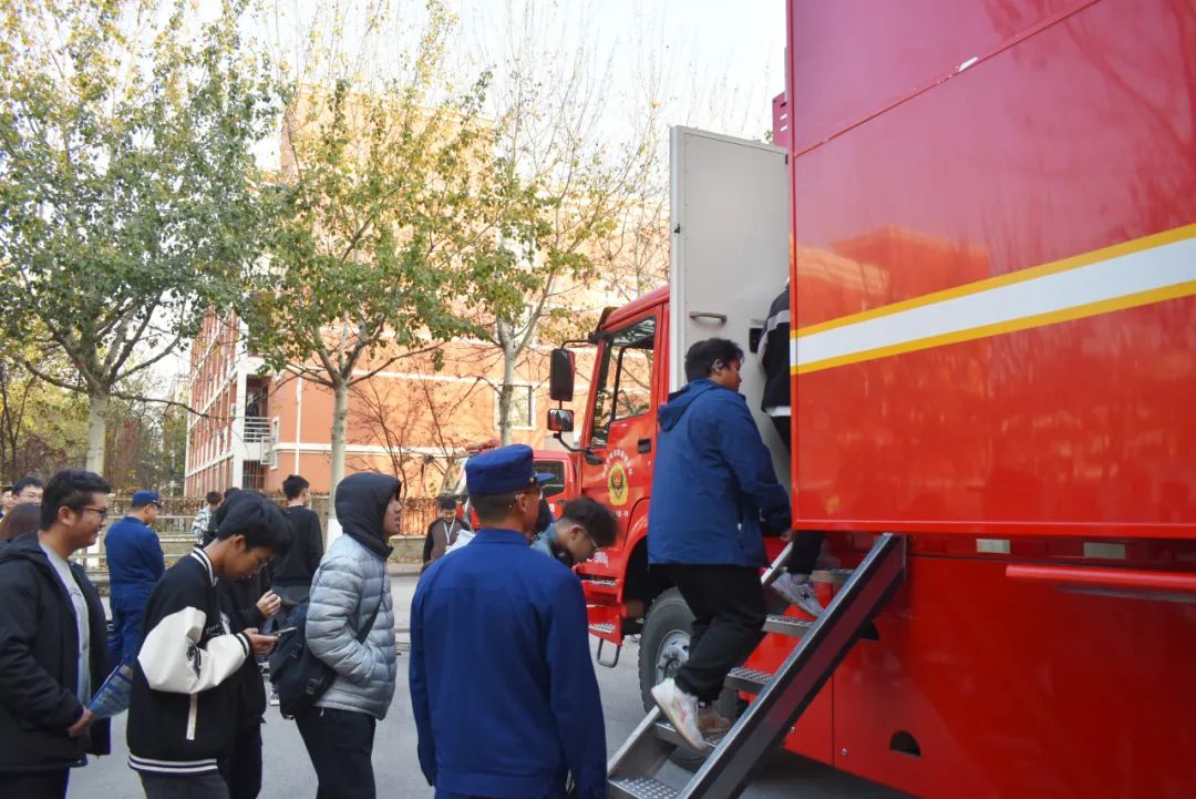 本次活動設置線下宣講、宣傳品發放和消防救援車輛器材展示兩個展區。一方面通過制作精美的宣傳頁,將校園生活中消防、反詐的安全常識,應急求助的聯絡方式向同學們普及;另一方面通過新城消防站指戰員的專業展示,吸引廣大師生走進消防,了解安全,學習安全知識和自護自救技能。