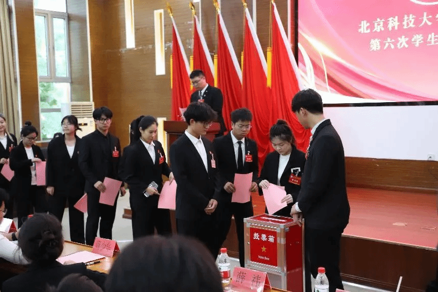 大會審議通過《北京科技大學天津學院第六次學生代表大會工作報告》《北京科技大學天津學院第六次學生代表大會提案工作報告》,按照選舉辦法,以差額方式公開選舉產生學生會新一屆學生委員會委員、新一屆學生會主席團成員。