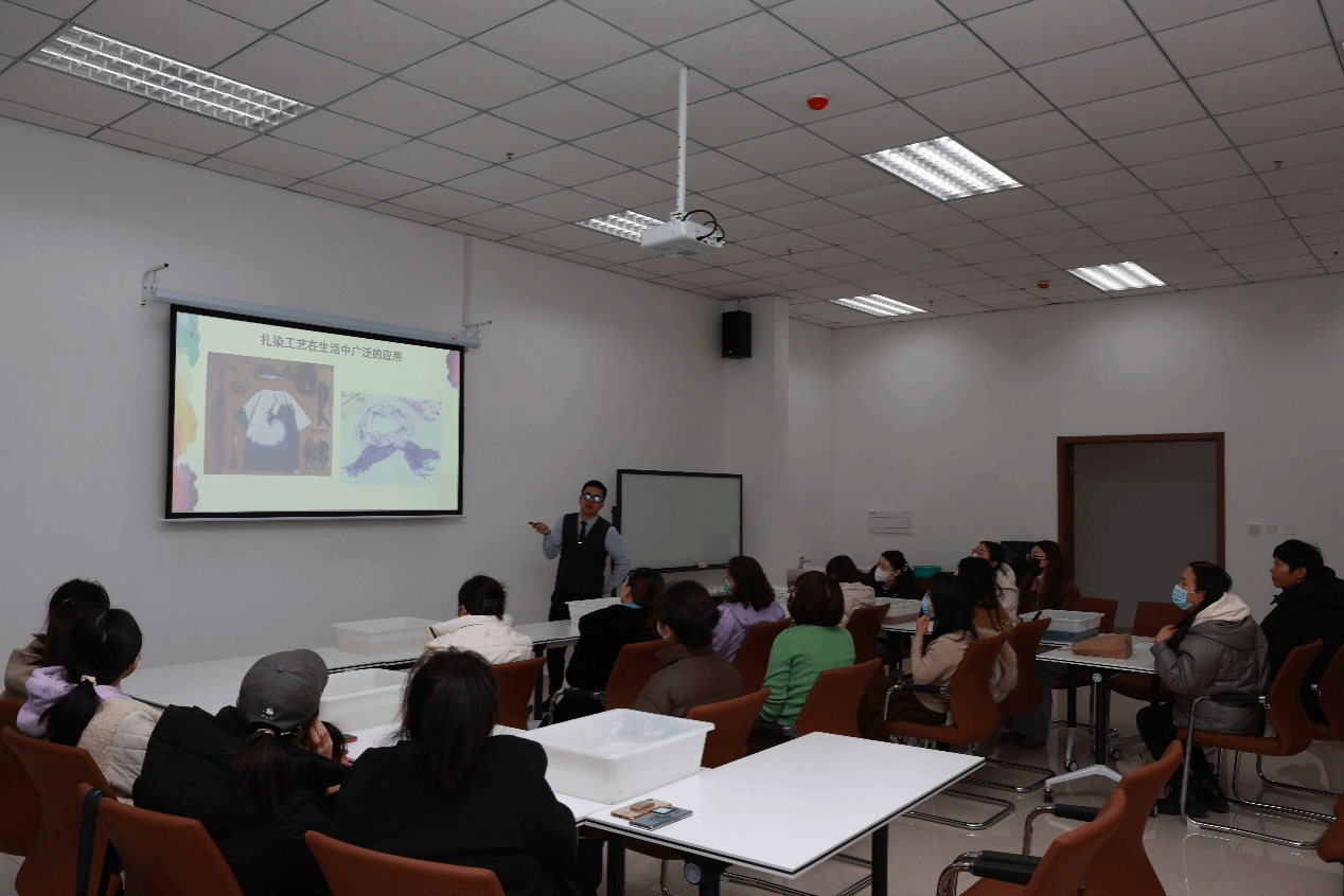 為全面貫徹黨的二十大精神,弘揚(yáng)傳統(tǒng)民族文化,豐富女教師文化生活,激發(fā)對傳統(tǒng)技藝的興趣,2023年12月1日,在教師發(fā)展中心勵(lì)學(xué)坊,由學(xué)院工會(huì)和圖書館聯(lián)合舉辦“巧手來扎染”女工活動(dòng),工會(huì)主席郭雅娟、女工委員班嵐、圖書館參考咨詢部主任吳素舫等近40名教職工參加此次活動(dòng)。