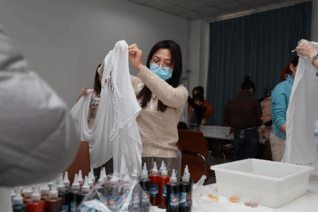 老師們在扎染的技法中感受中華民族傳統(tǒng)文化的韻味,相互分享著動(dòng)手扎染的體會(huì)和收獲的喜悅,現(xiàn)場氣氛熱烈融洽,通過此次活動(dòng),了解了扎染知識,學(xué)到了扎染的技巧,切身感受到非遺文化的魅力,加深了對非遺傳統(tǒng)文化傳承的思考與見解。工會(huì)將繼續(xù)開展豐富多樣的文化傳承活動(dòng),在豐富大家的精神文化生活的同時(shí),增強(qiáng)傳承與保護(hù)非物質(zhì)文化遺產(chǎn)的責(zé)任感和使命感。