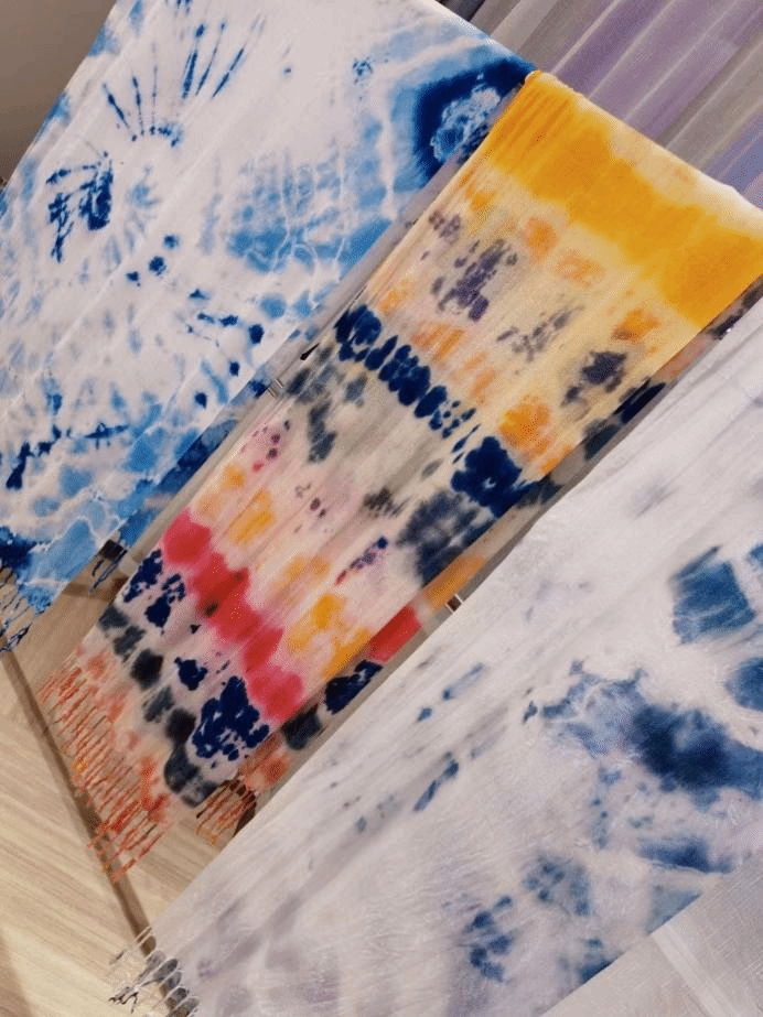 通過親自動(dòng)手,大家根據(jù)自己的喜好和創(chuàng)意,對提前準(zhǔn)備好的絲巾進(jìn)行“扎”與“染”等一系列操作,一扎一染,一浸一潤,一條潔白的絲巾染上斑斕的色彩,每一幅獨(dú)一無二的作品,展現(xiàn)了大家對美的理解和追求,蘊(yùn)藏著勞動(dòng)的智慧與創(chuàng)造力。