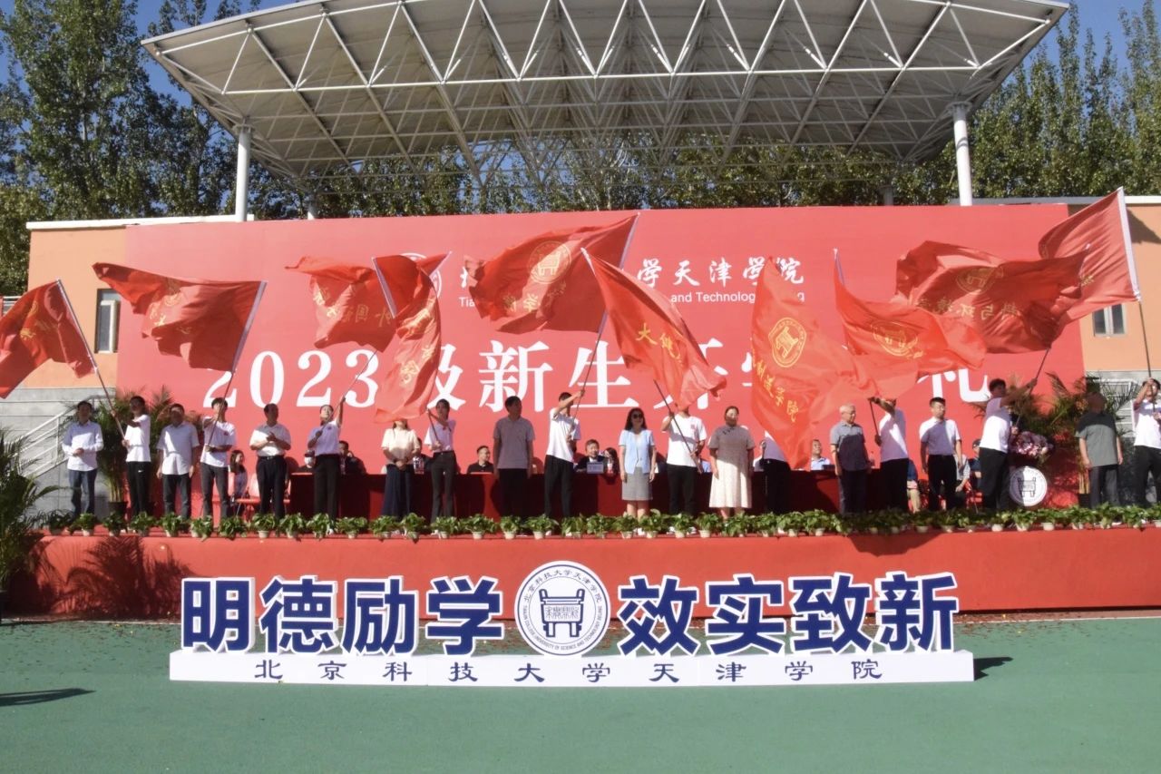 各院系院長主任為新生代表授旗,標志著4400余名新生正式加入北京科技大學天津學院,為學院注入新鮮血液,也標志著新同學們將繼承和發揚一代代天津學院學子的優良傳統和精神風貌,主動承擔起推進學院發展的責任與使命,開啟一段充滿希望和挑戰的大學生活。