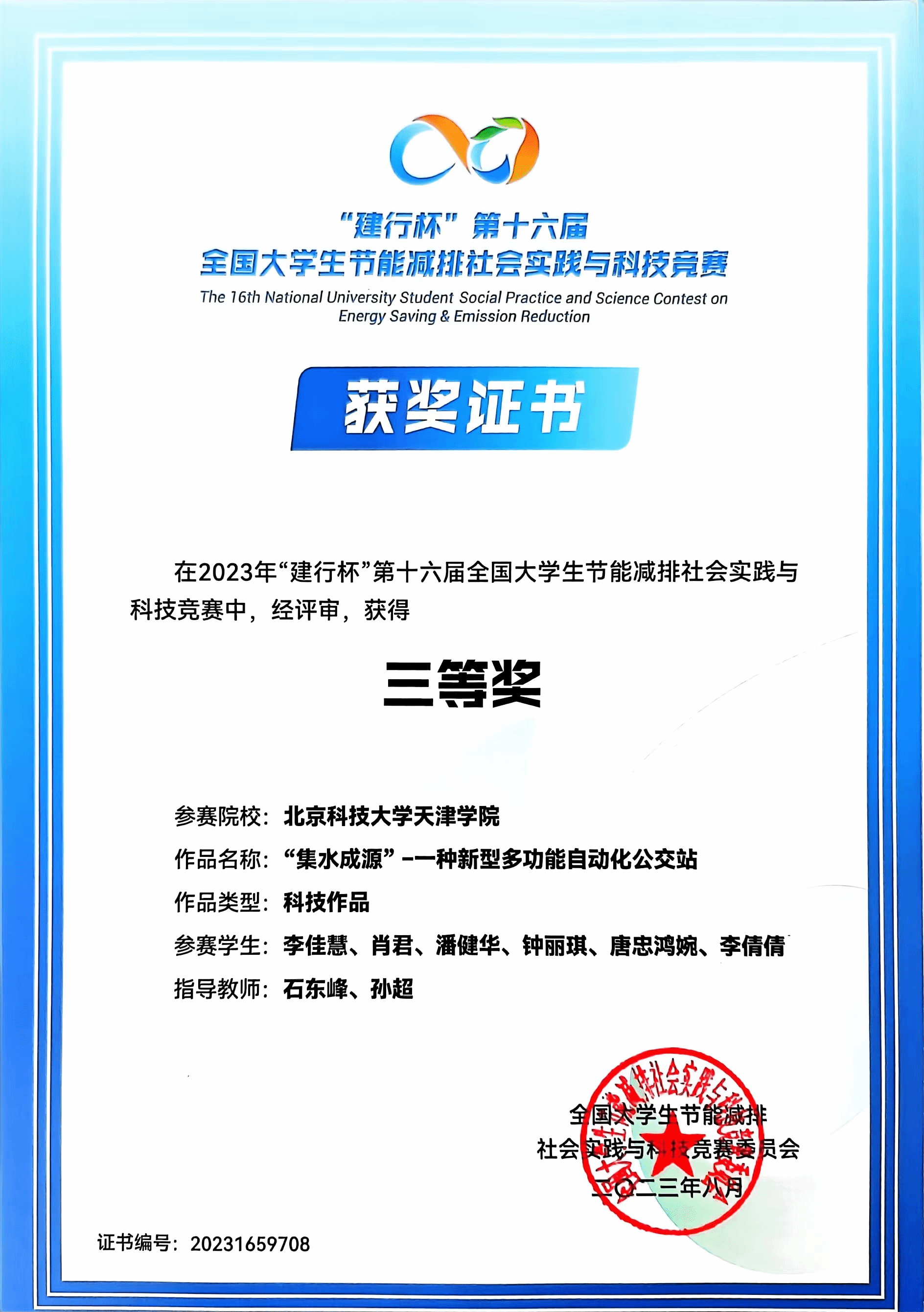 8月3日,“建行杯”第十六屆全國大學生節能減排社會實踐與科技競賽在東南大學落下帷幕。金沙城js93線路檢測中心參賽作品“秸盡所能,資源創新”-秸稈與餐廚垃圾制新型生物質燃料一體化裝置(劉俊杰和梁寶瑞老師指導)、“集水成源”-一種新型多功能自動化公交站(石東峰和孫超老師指導)獲得全國三等獎(2項),并再次獲得優秀組織獎。