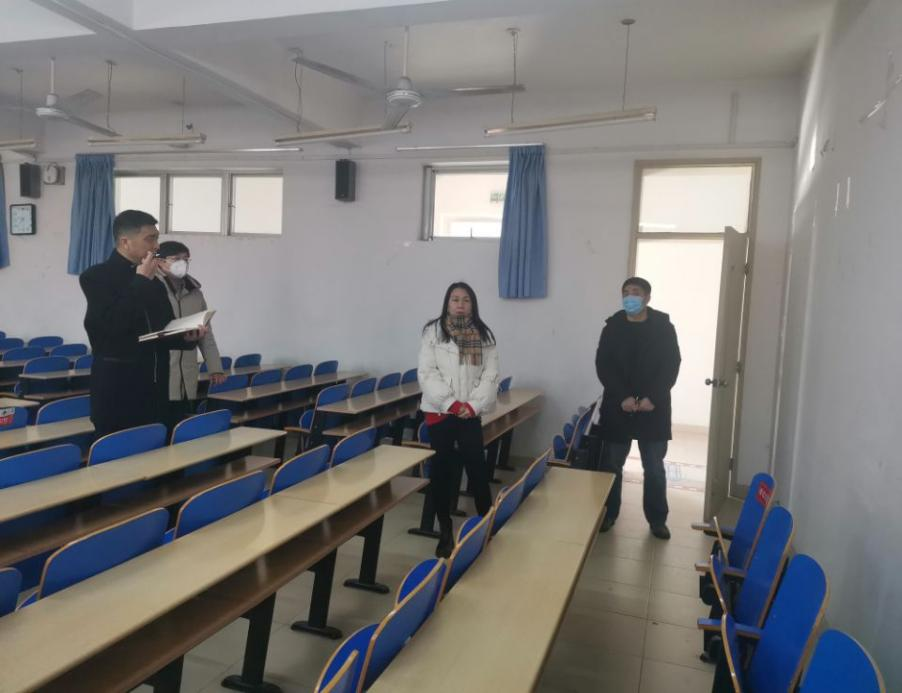 副院長兼財(cái)務(wù)總監(jiān)王俊敏,院長助理、學(xué)術(shù)委員會主席宋存義帶隊(duì)檢查8教、9教,仔細(xì)檢查了教學(xué)設(shè)備、教室桌椅情況。