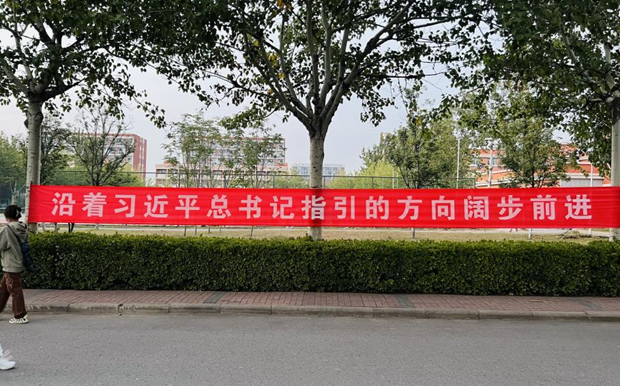 學院通過條幅、電子屏、櫥窗、幕布等宣傳黨的二十大精神