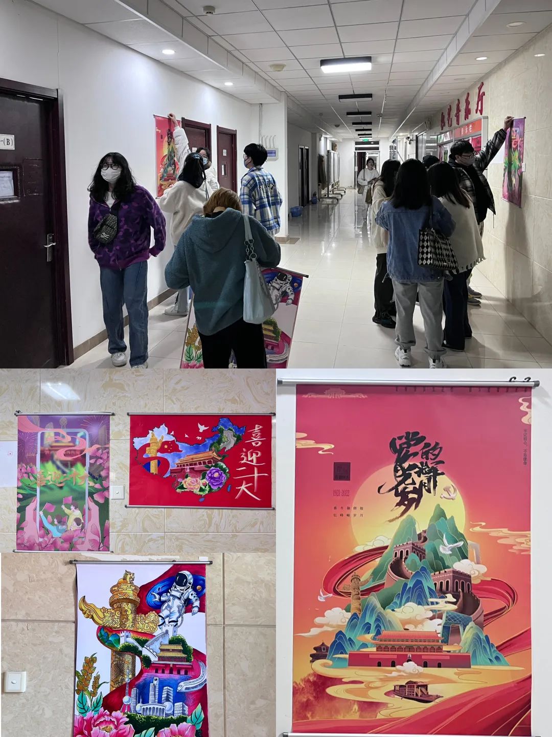 藝術學院學生第一黨支部開展“喜迎二十大,追夢正當時”主題黨日活動,布置藝術學院黨建文化墻,裝裱黨支部成員手繪、板繪、海報等喜迎二十大主題作品
