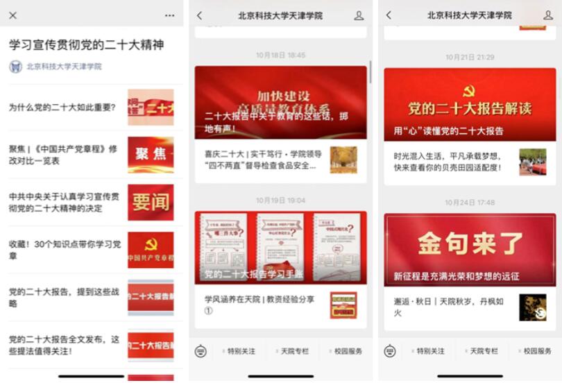 學院官網、官方微信平臺、官方微博轉載發布宣傳黨的二十大精神