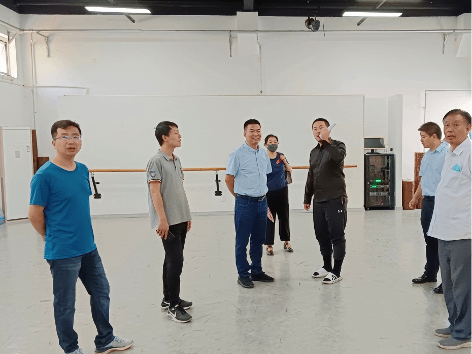 黨委副書(shū)記趙志南,院長(zhǎng)助理、學(xué)術(shù)委員會(huì)主席宋存義檢查舞蹈排練廳