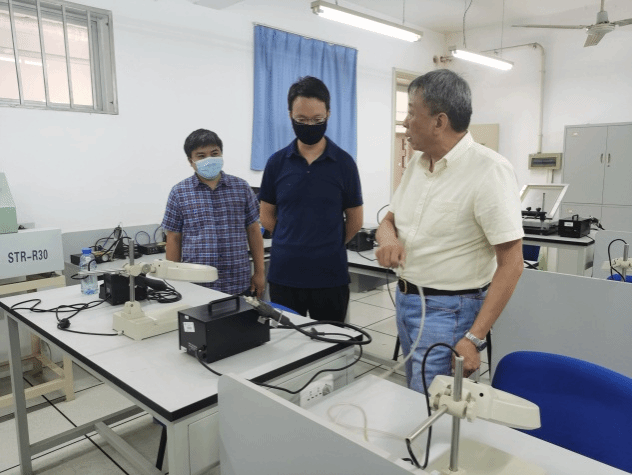 院長(zhǎng)助理、學(xué)術(shù)委員會(huì)主席宋存義檢查7教實(shí)驗(yàn)室設(shè)備