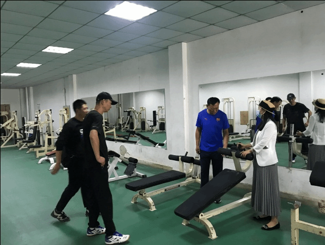 副院長(zhǎng)兼財(cái)務(wù)總監(jiān)王俊敏檢查體育館運(yùn)動(dòng)器械