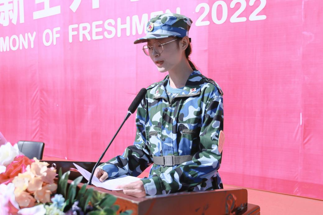 石沙沙同學(xué)代表2022級(jí)新生發(fā)言,她號(hào)召全體新同學(xué)們敢于無(wú)畏向前,勤于開(kāi)拓進(jìn)取,樂(lè)于奮斗奉獻(xiàn),要承擔(dān)起時(shí)代賦予的責(zé)任,心懷請(qǐng)黨放心、強(qiáng)國(guó)有我的錚錚誓言,秉承清澈的愛(ài)、只為中國(guó)的深情厚意,以新的語(yǔ)言、新的行動(dòng)、新的風(fēng)貌去開(kāi)啟一段新的旅程。