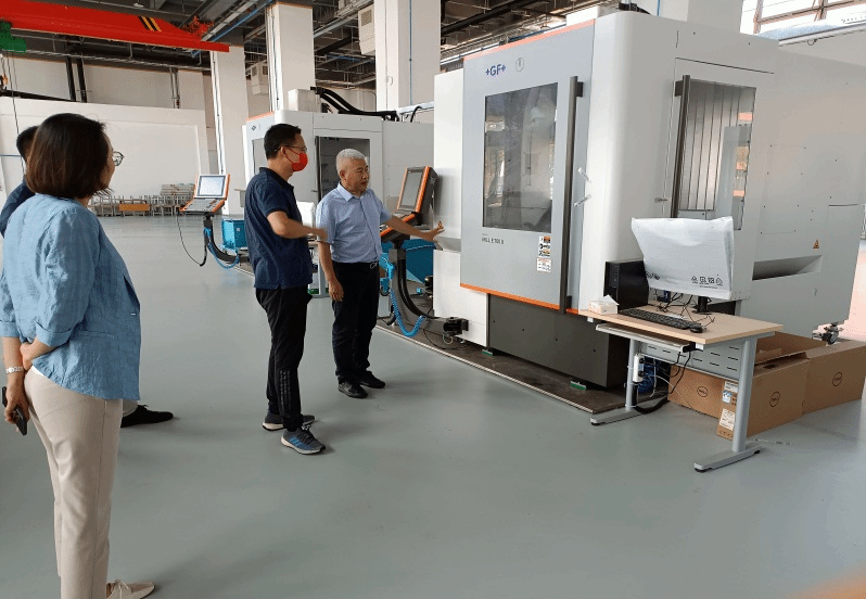 葉振楠書記一行來到天津濱海新區(qū)先進制造職業(yè)技能公共實訓(xùn)中心,在企業(yè)中航教育負責(zé)人的陪同下首先參觀了工業(yè)4.0車間的眾多智能制造設(shè)備,之后參觀了航空制造實訓(xùn)區(qū)了解了實訓(xùn)中心的實訓(xùn)理念、內(nèi)容、流程和要求。