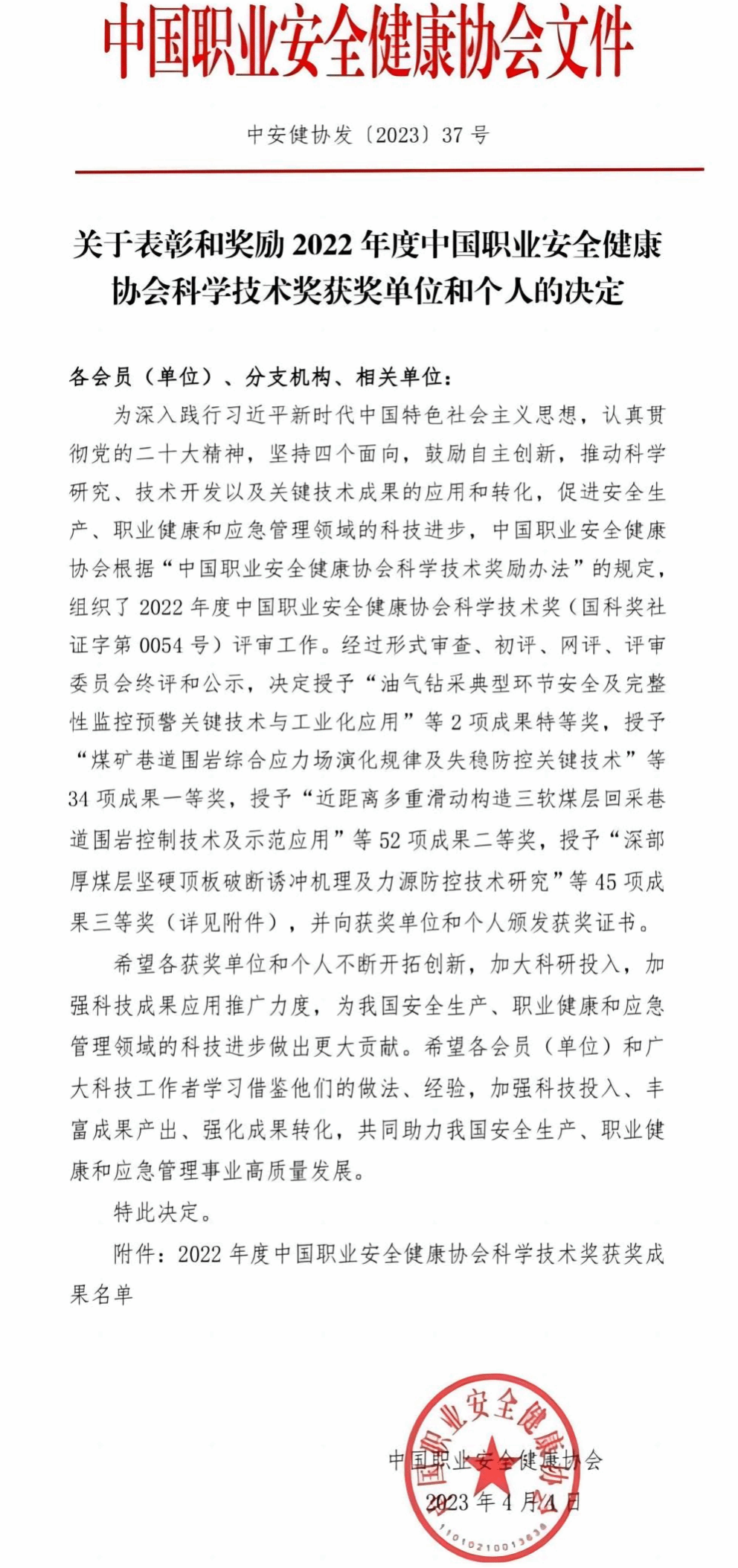 日前,中國職業安全健康協會發布了《關于表彰和獎勵2022年度中國職業安全健康協會科學技術獎獲獎單位和個人的決定》。金沙城js93線路檢測中心城市建設學院團隊參與的課題《撫順西露天礦區地質災害演化及多維度綜合防控技術研究》,獲中...
