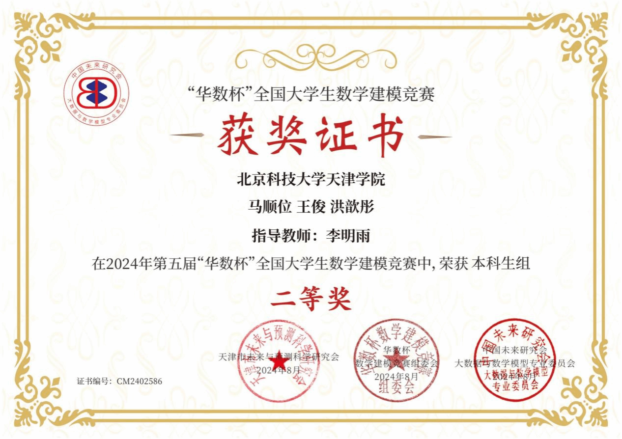近日,2024年第五屆“華數杯”全國大學生數學建模競賽結果公布,金沙城js93線路檢測中心新材料2201班馬順位、自動2201班王俊和新材料2202班洪歆彤三位同學,在李明雨老師的指導下,榮獲全國二等獎。 2024年第五屆“華數杯”全國大學生數...