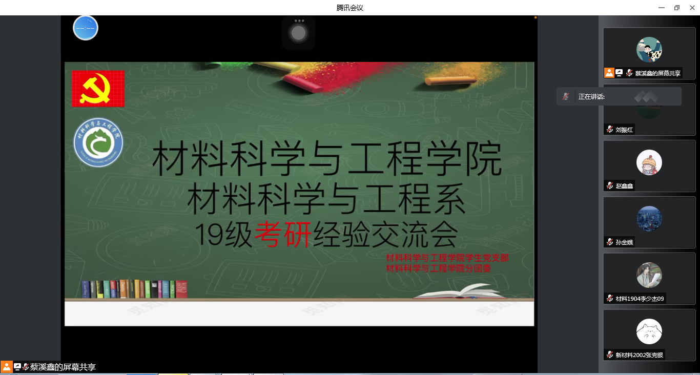 2022年4月16日(周六),材料科學(xué)與工程系線上召開了19級考研經(jīng)驗交流會。會議邀請考取碩士研究生的材料專業(yè)優(yōu)秀學(xué)生,給材料19級備考學(xué)生分享考研經(jīng)驗。其中做主題發(fā)言的優(yōu)秀學(xué)生是:材料17級的史欣怡、王舒云同學(xué),...