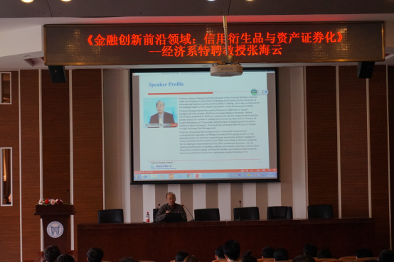 2016年5月9日下午13點,經濟系特聘教授、對外經濟貿易大學金融市場研究中心主任、金融學院教授張海云,在理工圖書館學術報告廳,開展了關于“金融創新前沿領域:信用衍生品與資產證券化”為主題的學術講座。來自各系...