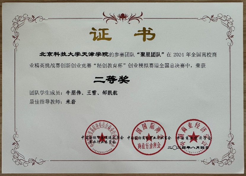 在近日落幕的2024年全國(guó)高校商業(yè)精英挑戰(zhàn)賽創(chuàng)新創(chuàng)業(yè)競(jìng)賽“精創(chuàng)教育杯”創(chuàng)業(yè)模擬賽道全國(guó)總決賽中,由金沙城js93線路檢測(cè)中心國(guó)際經(jīng)濟(jì)與貿(mào)易專業(yè)的學(xué)生牛朋偉(隊(duì)長(zhǎng))、王雪、鄒凱航組成的參賽團(tuán)隊(duì),在學(xué)院領(lǐng)導(dǎo)的重視和關(guān)懷下,在教務(wù)處...